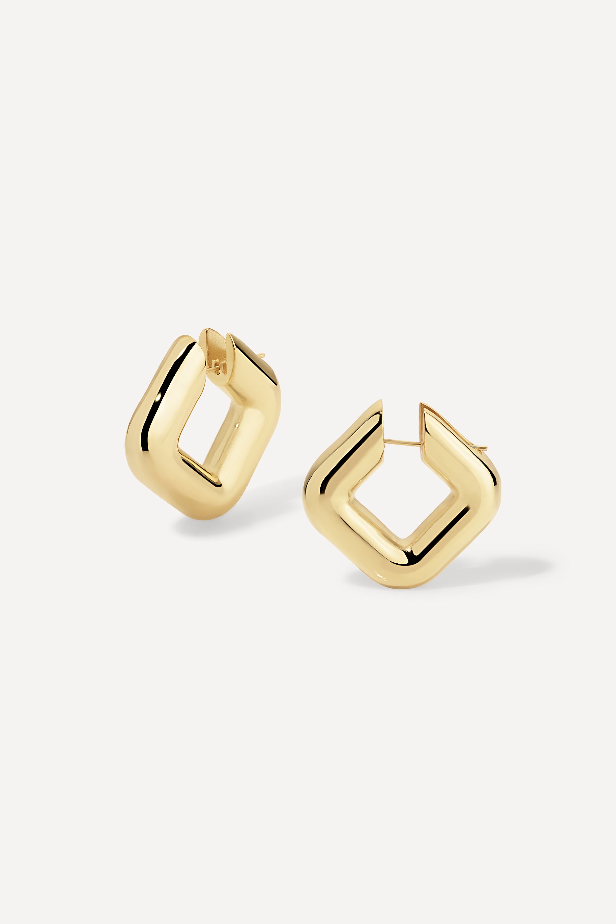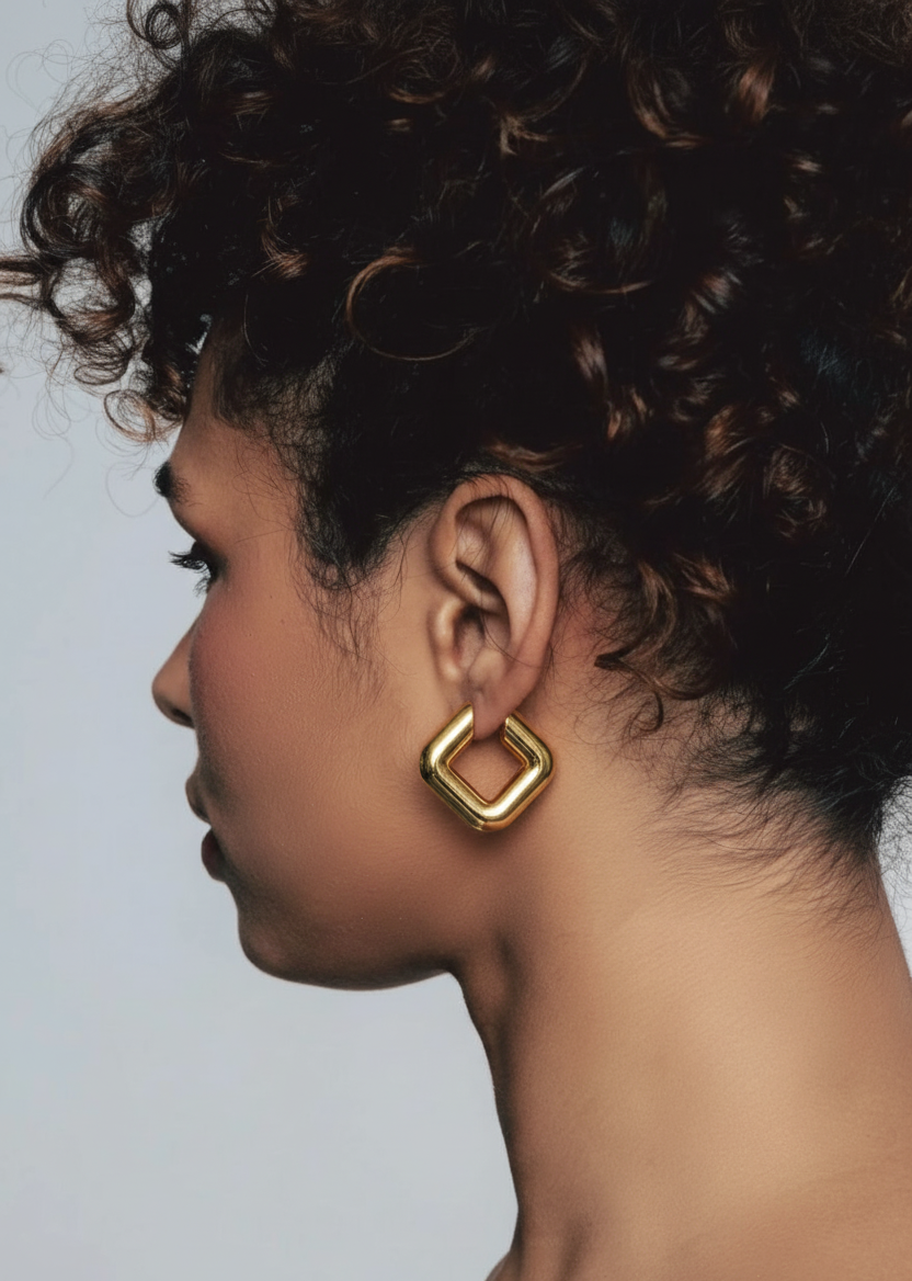 Bold geometry meets timeless shine, The Jersey Diamond Hoops redefine the classic hoop with their distinctive angular diamond silhouette.