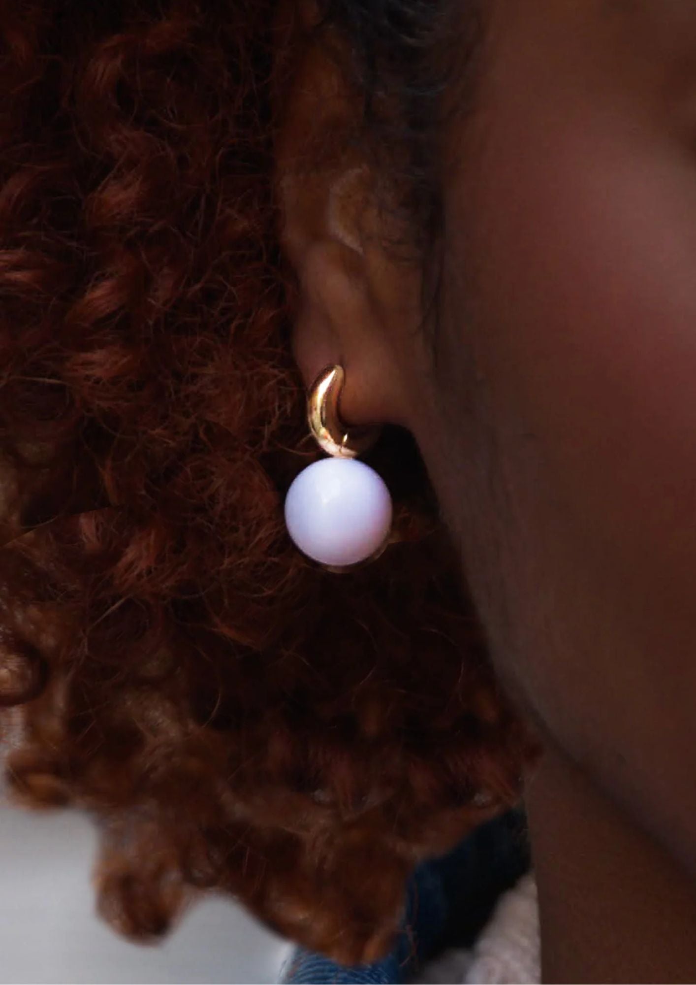 The Michelle Huggie in Baby Pink are the perfect 'non-dangly' earrings. These milky, iridescent oversized spheres have a presence and glisten with faint pink color.